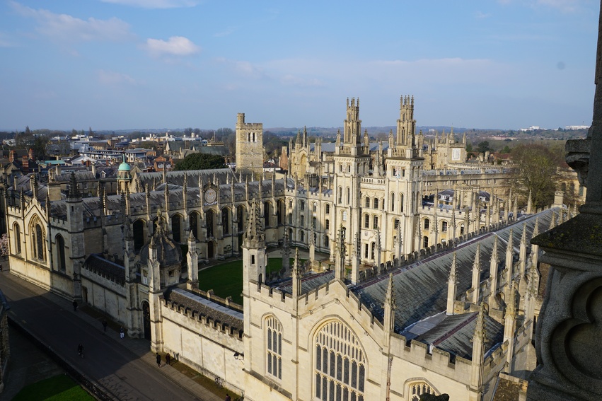 Je kunt de University Church of St Mary the Virgin van binnen beklimmen. Het is best een zware klim met veel traptreden, maar de top is de moeite meer dan waard. Vanaf de toren heb je een mooi uitzicht over Radcliffe Camera en je kunt er een typische Oxford foto maken (net zoals ze in de reisgidsen staan). Om de top van de toren te mogen beklimmen betaal je £4,-. Wat ons betreft: “Money well spent”.
