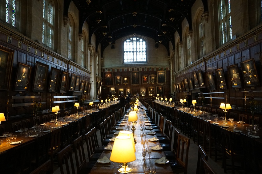 De Hall of Christ Church bijvoorbeeld. Hoewel de daadwerkelijke scenes hier niet zijn opgenomen is de ruimte wel nagebouwd in de studio voor de Harry Potter films.
