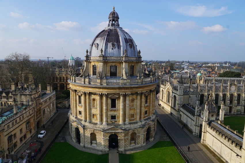 Het mooie ronde gebouw in het centrum van Oxford werd gebouwd in opdracht van John Radcliffe. Deze jonge succesvolle student volgde al op 13-jarige leeftijd colleges op de universiteit en bouwde een succesvolle medicijncarrière op. Dankzij zijn uitstekende medische kennis kreeg hij belangrijke patiënten onder behandeling. Hierdoor kon hij een fortuin verdienen tijdens zijn leven. Twee jaar voordat hij kwam te overlijden bedacht hij dat Oxford nog wel een uitgebreide en onafhankelijke bibliotheek kon gebruiken en liet er daarom eentje bouwen. Nog voordat met de bouw begonnen werd, overleed Radcliffe, maar hij beschreef in zijn testament wat de bedoeling voor Radcliffe Camera was en hoe de bibliotheek gerund moest worden. Hij liet ook na zijn dood geld na om nieuwe boeken van te kunnen kopen. De bibliotheek is nooit zo groot geworden als de Bodleian Library, en werd na verloop van tijd vooral gebruikt als leesruimte voor boeken uit de Bodleian bibliotheek. Daarom werd er besloten de bibliotheken samen te voegen waardoor Radcliffe Camera haar onafhankelijkheid uiteindelijk verloor. Helaas kun je niet naar binnen bij de bibliotheek.