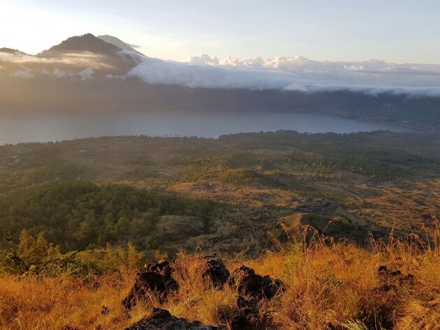 Eenmaal boven aangekomen, kun je een plekje zoeken vanwaar je de zonsopgang kunt bekijken. Je hebt vanaf hier een spectaculair uitzicht, ook het meer is goed te zien. Je krijgt ongeveer twee uur de tijd om boven rond te lopen. Je kan in die tijd ook naar de krater lopen. Om je heen zie je op sommige plekken stoom uit de grond zien komen.