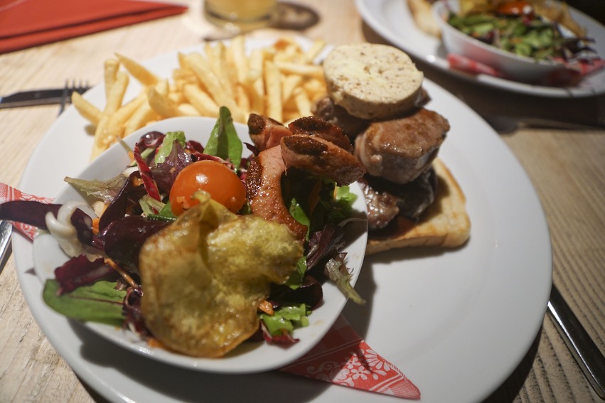 Een heerlijk gerecht dat met name te krijgen is in de Kitzbuehel Alpen is Hüttentoast. Dit gerecht is er in vele verschillende varianten, maar was wat ons betreft het lekkerst bij Gasthof (Pub) Obergaisberg op de Gaisberg. In de winter doet de Gaisberg dienst als een groot slee-parcours waarbij je halverwege bij Obergaisberg de inwendige mens kunt versterken met bijvoorbeeld Hüttentoast. Het gerecht bestaat meestal uit drie verschillende stukjes vlees, zoals rund, kalf en varken en wordt soms met wat groente en friet, maar altijd op toast geserveerd.
