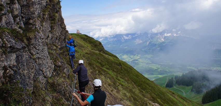 In St. Johann (Tirol) zijn twee nieuwe via ferrata routes aangelegd die je op de Kitzbüheler Horn kunt gaan verkennen. De opnieuw aangelegde routes zijn uitdagend en leuk voor iedereen die wel van een beetje fysieke uitdagingen houdt. Ook beginners kunnen een idee krijgen wat het is om zo’n parcours af te leggen op de oefenroute. Via de skilift op de Hohe Salve berg klim je tot zo’n 1.829 meter boven zeeniveau naar het Harschbichlalm restaurant met prachtig uitzicht over het landschap. Vanaf de Harschbichlalm wandel je een kleine 20 minuten naar de Kitzbüheler Horn waar zich een oefenroute bevind. Op deze route van 100 meter (level A met af en toe level C) leer je vooral de technieken die bij via ferrata komen kijken en kun je proeven aan de sport terwijl je van bijzondere panorama uitzichten kunt genieten.