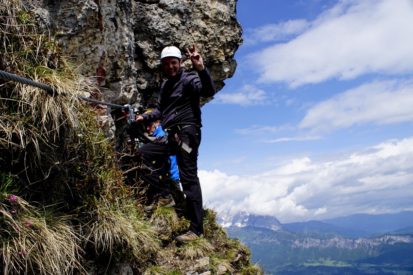 In de meeste gevallen zal je een via ferrata parcour afleggen met een gids. De gids verzorgt een tuigje, een helm en andere veiligheidsmiddelen waarbij je gegarandeerd een mooi avontuur tegemoet gaat. Wij hebben goede ervaringen met Thomas van Pure Mountain, een kundige gids met geduld en die heldere uitleg geeft.