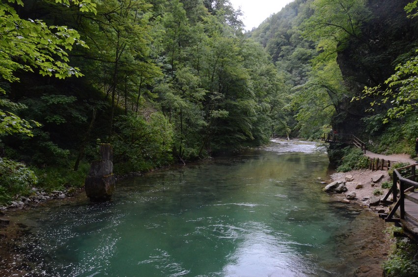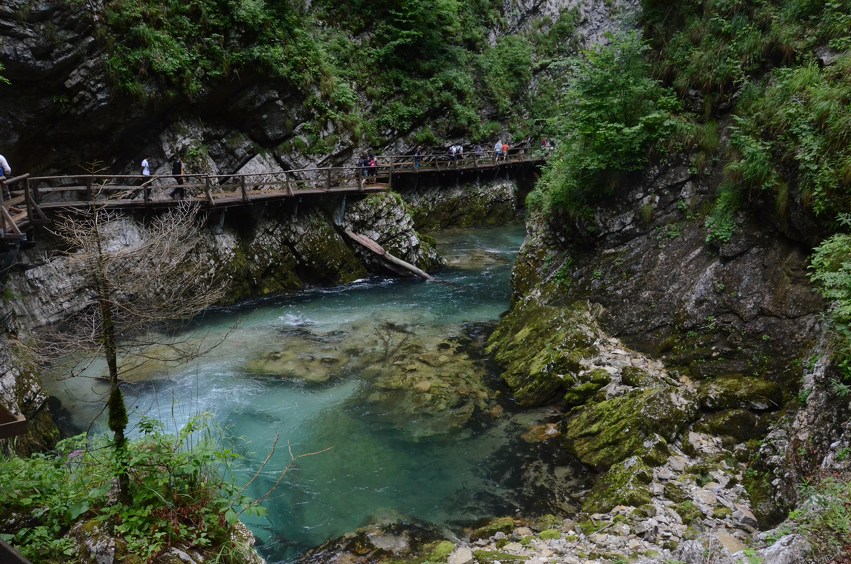 Slovenië zit vol prachtige natuur en rondom Bled vind je ook een aantal mooie bezienswaardigheden. Een prachtige plek om te bezoeken is de Vintgar Gorge (kloof): een kloof waar een rivier doorheen stroomt, met de 13 meter hoge Sum waterval op het eind. De Vintgar Gorge ligt op zo’n 3 km afstand van bled. Je loopt hier via houten bruggetjes, met een totale lengte van 1,6 kilometer, langs bergwanden en rotsen. Het water is overal helderblauw.