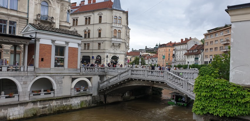 Vanaf het Prešernov plein loop je zo de Tromostovje brug (de 'Drie Bruggen') op, die aan weerszijden een mooie blik geven op de rivier de Ljubljanica. Dit is een van de bekendste bruggen van Ljubljana. Hier in de buurt ligt het Vodnikov plein. Hier moet je zijn als je graag een markt bezoekt. Je vindt hier regelmatig kraampjes waar de lekkerste groente en fruit wordt verkocht. Eén van de bekendste bezienswaardigheden van Ljubljana ligt om de hoek van het plein: de Drakenbrug. Deze brug is gebouwd in 1901. De legende vertelt dat de Griekse prins Jason Ljubljana heeft gesticht en tijdens zijn queeste naar het Gulden Vlies doodde hij, in het moerasland, een gevaarlijke draak. De vier draken die de toegang tot de brug bewaken zijn het symbool voor de stad.