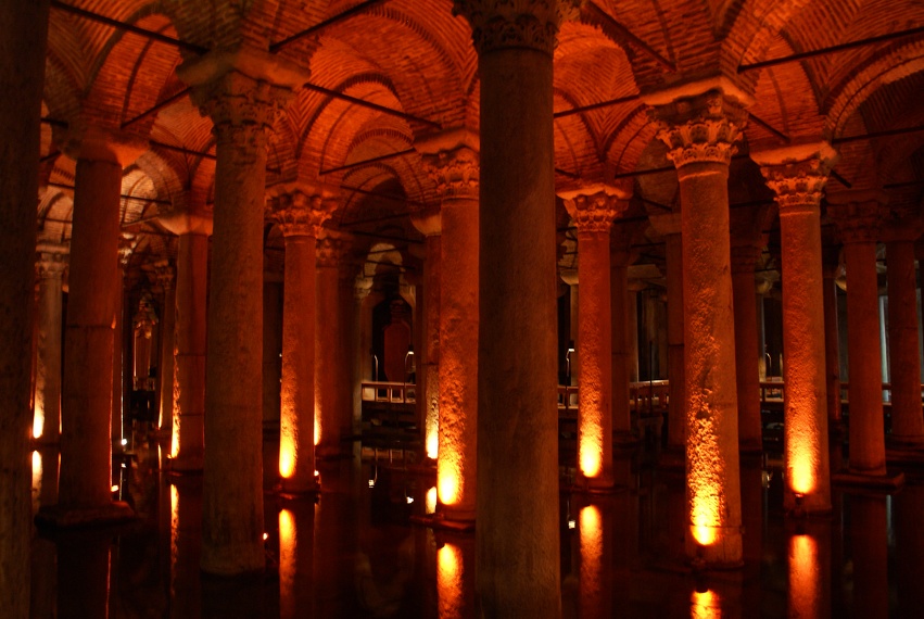 Weer eens wat anders dan een moskee, maar zeker niet minder intrigerend is de Basilica Cistern. Dit is een ondergronds waterreservoir uit de 6e eeuw na Christus. Het is een ondergrondse ruimte van 65 meter hoog, ondersteund door 336 indrukwekkende pilaren. Het is oorspronkelijk gebouwd als wateropslag voor het Grote Paleis en daarna voor eeuwen vergeten. In de 16e eeuw werd het reservoir opnieuw ontdekt door Petrus Gyllius, die van burgers te horen kreeg dat zij vis konden vangen in hun kelders. Vervolgens werd de ruimte gebruikt als dumpplek voor afval en lijken, tot het halverwege de 20e eeuw schoongemaakt is en werd gerenoveerd.