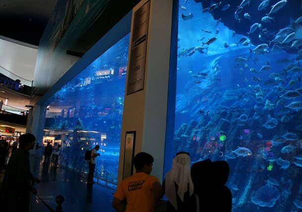 De Dubai Mall is naast veel dure winkels ook de trotse eigenaar van het grootste aquarium ter wereld. Je kunt dit in de hal kosteloos bekijken. Geen zin in water maar wel om te schaatsen? dan kan je in de mall ook nog een ijsbaan vinden.